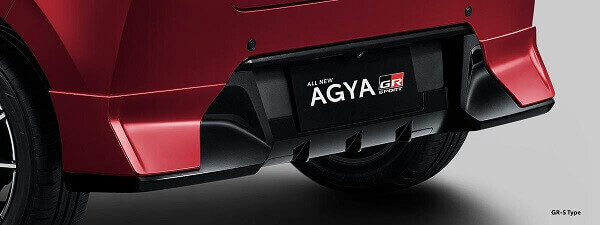 Di sisi eksterior Toyota All New Agya dilengkapi dengan lampu depan LED dan lampu penerangan LED. Toyota All New Agya terdapat beberapa pilihan warna One Tone yang terdiri dari White, Red, Black, Yellow, Silver, Gray, dan Orange.